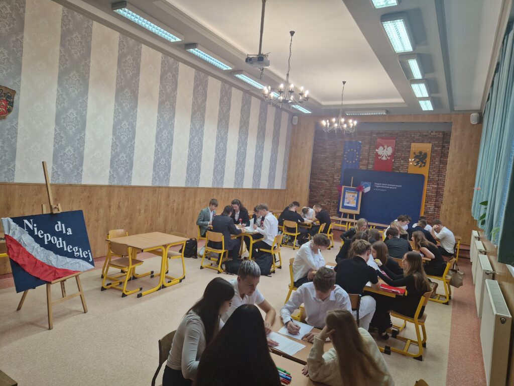 Świętować można różnie co udowodnili uczniowie biorąc udział w różnych zmaganiach.  Drużyny reprezentujące klasy trzecie liceum i technikum pod czujnym okiem p. A. Dzienisz wzięły udział w turnieju wiedzy o Niepodległej. Młodzież rozwiązywała testy, krzyżówki, uzupełniała mapę, analizowała materiały źródłowe. W rywalizacji wzięło uzdał sześć zespołów. Jury po podliczeniu punktów ustaliło następującą klasyfikację: