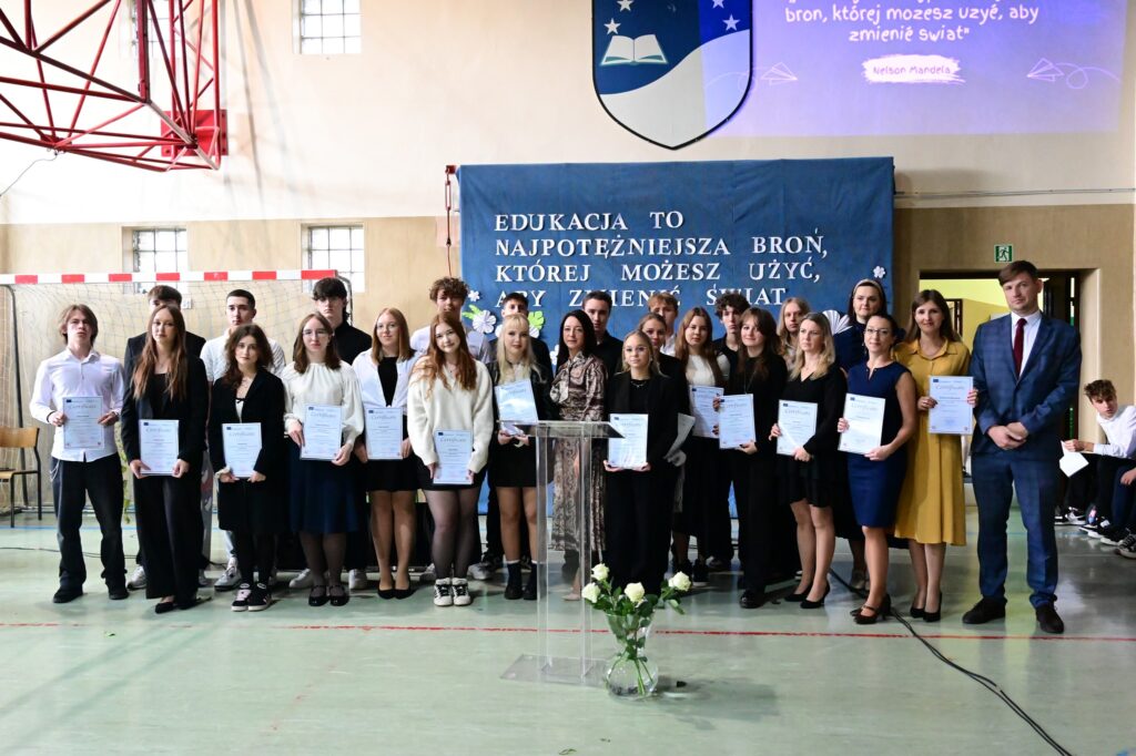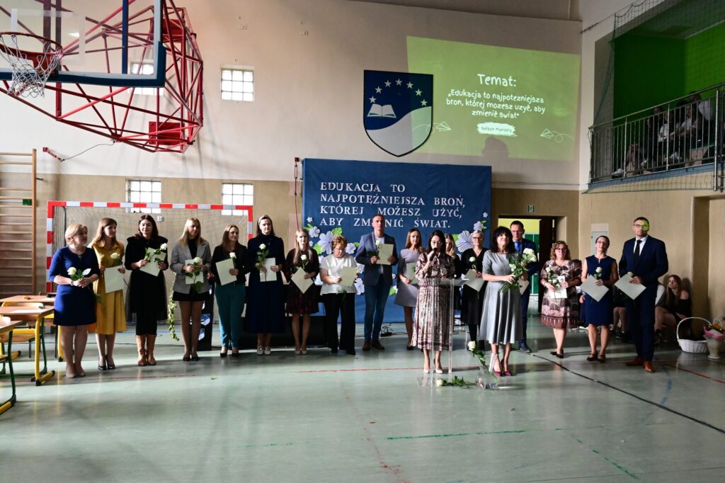 W dniu 10 października uczniowie naszej szkoły wzięli udział w wyjątkowej akademii z okazji Dnia Edukacji Narodowej. Wydarzenie to było piękną okazją do wyrażenia wdzięczności i uznania dla pracy nauczycieli oraz podkreślenia ich roli w kształtowaniu młodych umysłów. Część artystyczna była starannie przygotowana przez Panią Martę Furman oraz Weronikę Wolańską. Uczniowie zaprezentowali wiersze, piosenki oraz tańce, które wywołały u publiczności zarówno uśmiech, jak i wzruszenie. Występy były nie tylko pełne emocji, ale także pokazujące wysokie umiejętności artystyczne młodych artystów. Szczególnie wzruszające były słowa podziękowań od przedstawicieli Samorządu Uczniowskiego, którzy złożyli nauczycielom serdeczne życzenia. Cała akademia była okazją do wspólnego świętowania i wyrażenia szacunku dla pedagogów, którzy codziennie wkładają serce w swoją pracę.